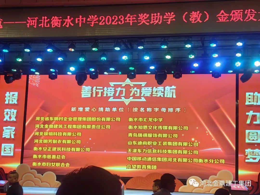 金鼎集團(tuán)祝賀河北衡水中學(xué)2023年獎學(xué)金助學(xué)(教)金頒獎大會圓滿結(jié)束!